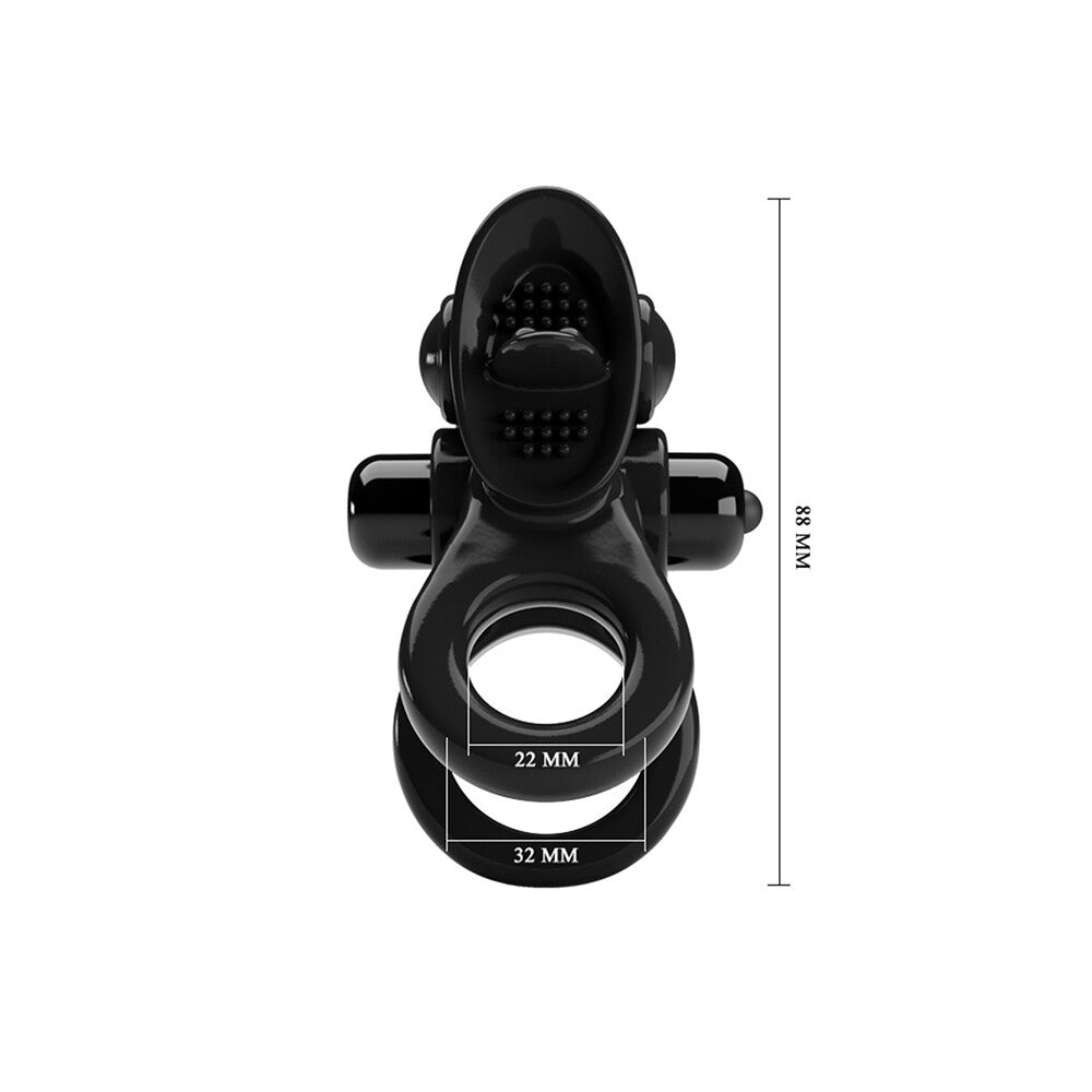 This vibrating cock ring is made of stretchy material that will fit around the base of the penis and balls. While the cock ring ensures longer lasting and larger erections, the tongue stimulator provides pleasure to your partner. This cock ring vibrator has 10 vibration modes.